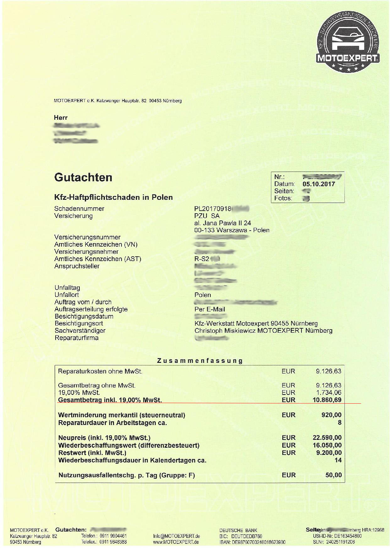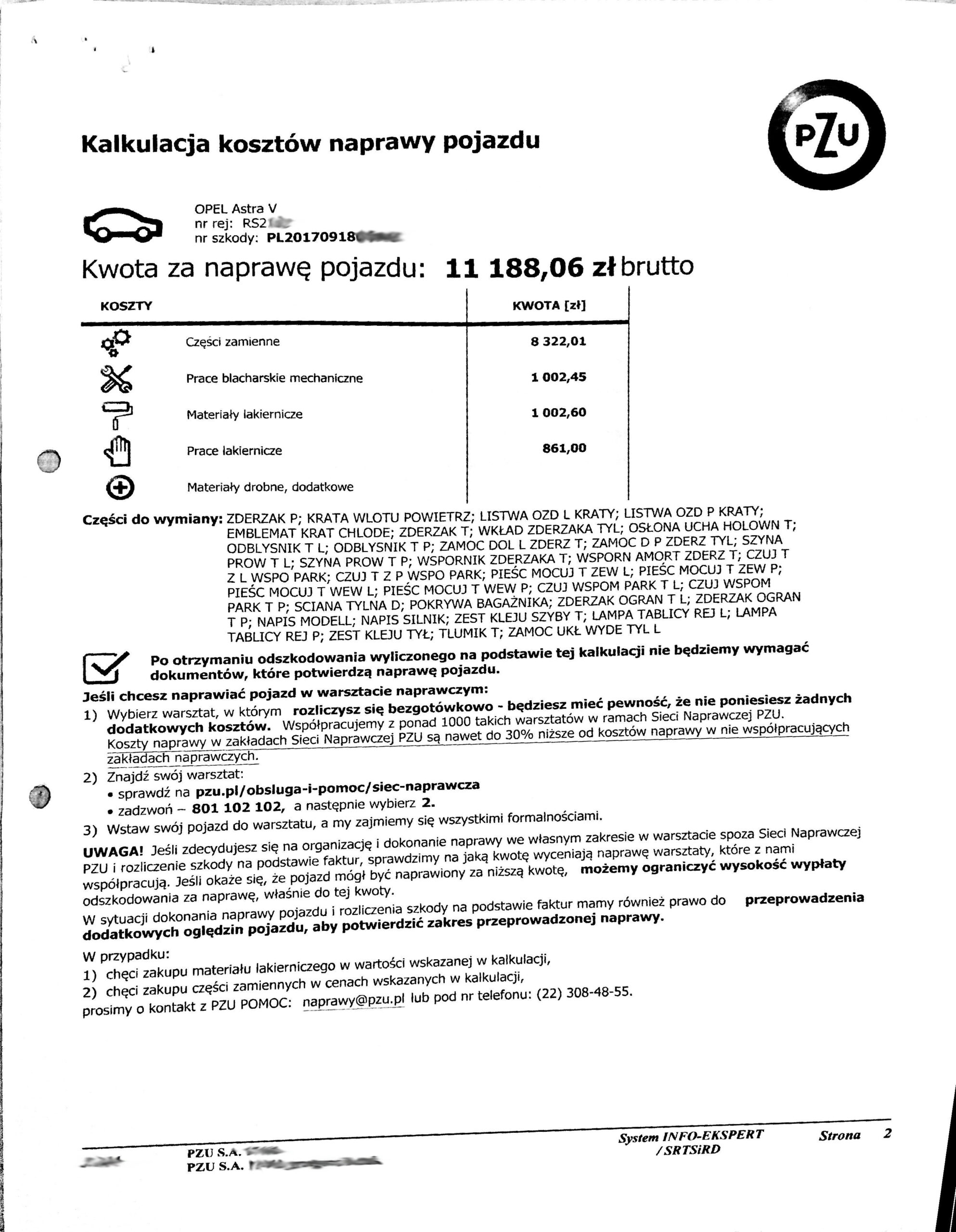 Our Customer contact us, due suspicions underestimated compensation. It’s how PZU evaluated our client car. For obvious reasons all sensitive data are blured.